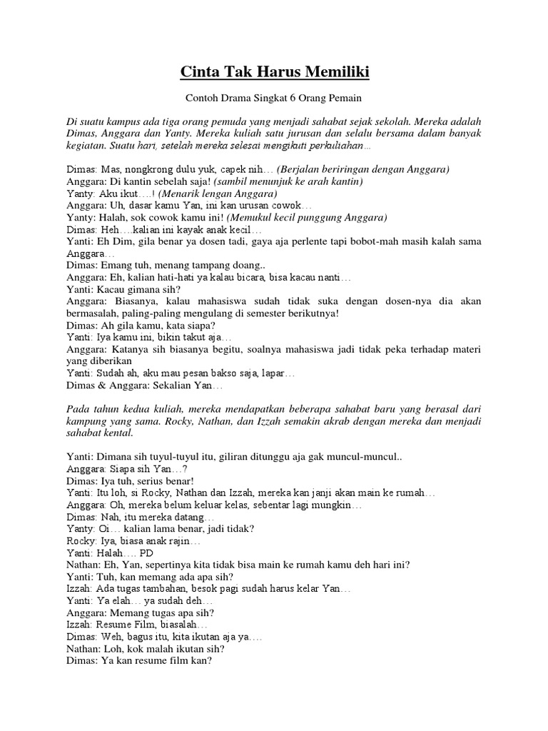 13 Contoh Naskah Drama Komedi Persahabatan Cinta 5 6 7 Orang
