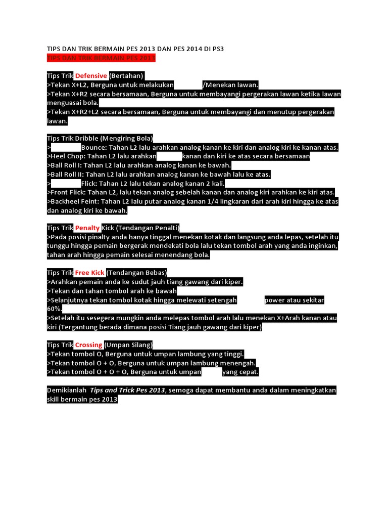 Tips Dan Trik Bermain Pes 2013 Dan Pes 2014 Di Ps3 Pdf Document