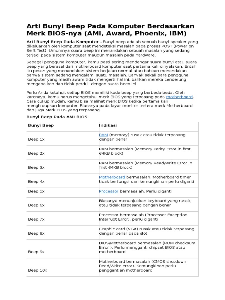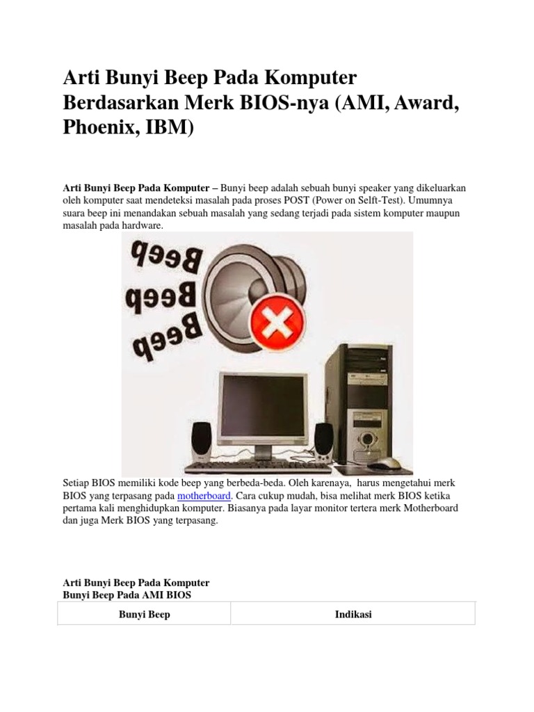 Arti Bunyi Beep Pada Komputer Berdasarkan Merk Bios Nya Ami Award Phoenix Ibm Pintar Komputer