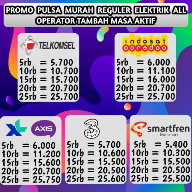 Pulsa Reguler Elektrik Mkios All Operator Telkomsel Tri 3 Axis Xl Axis Indosat Smartfren Shopee Indonesia