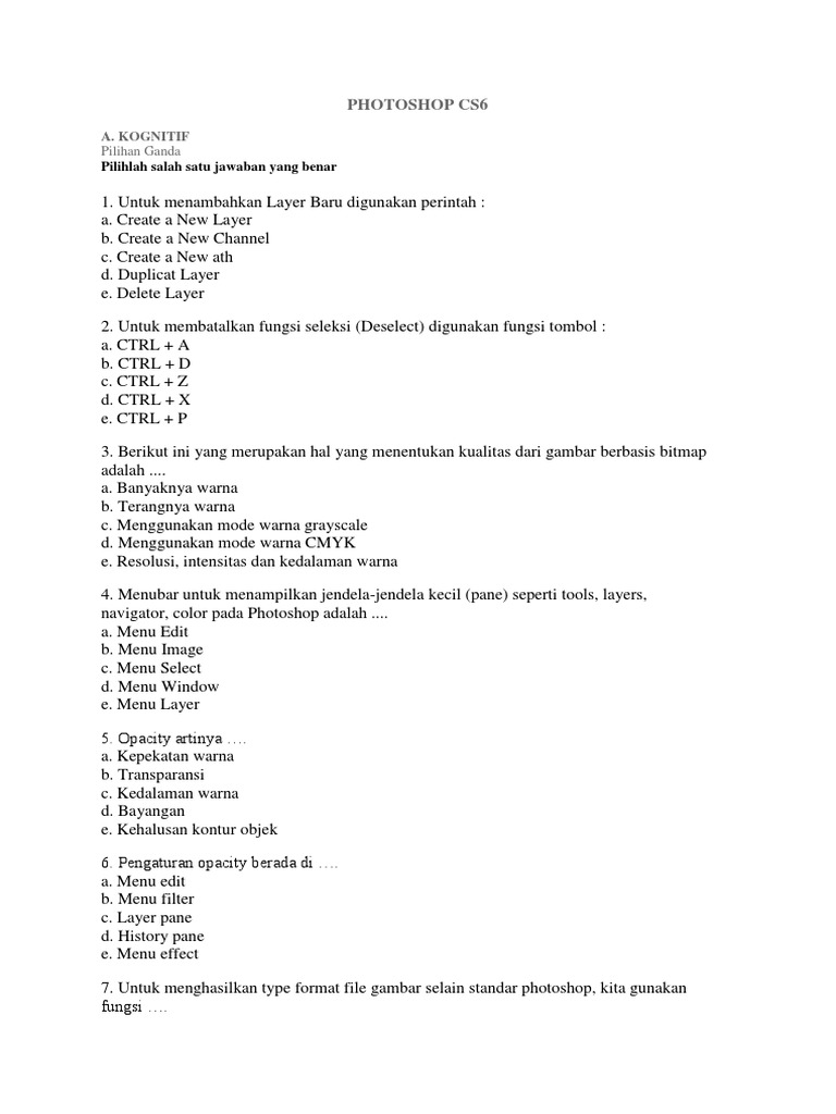 Soal Dan Jawaban Contoh Soal Dan Jawaban Tentang Adobe Photoshop